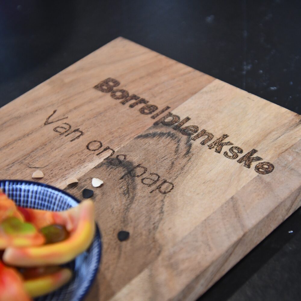 Een borrelplank met eigen tekst