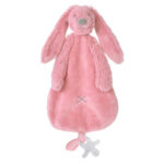Het lichtroze knuffeldoekje van ons populairste konijn Rabbit Richie is niet alleen super zacht, maar houdt ook nog eens makkelijk vast aan zijn oren of armen. Hij biedt troost, geeft rust en is voor vele kinderen al een onmisbaar vriendje!