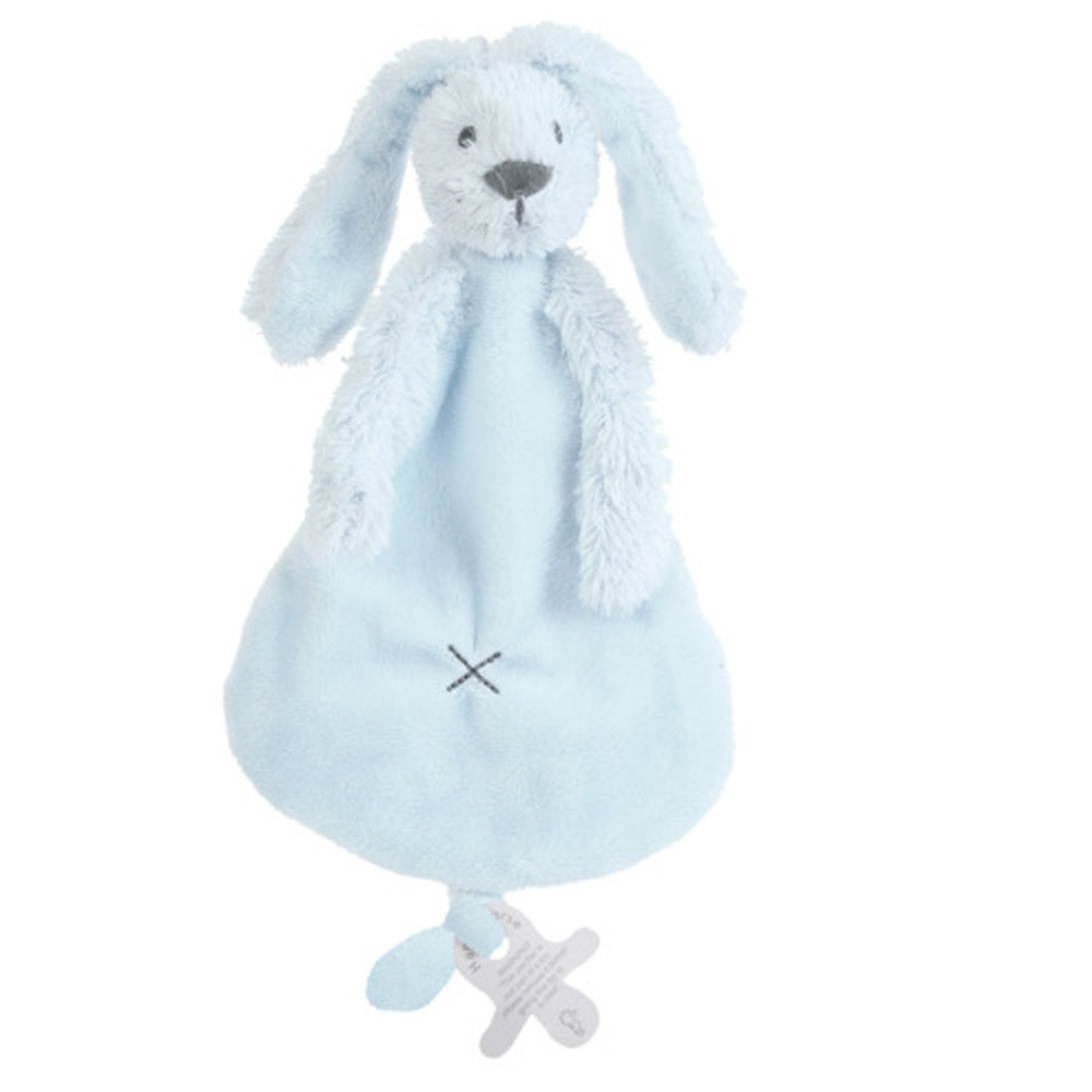 Het lichtblauwe knuffeldoekje van ons populairste konijn Rabbit Richie is niet alleen super zacht, maar houdt ook nog eens makkelijk vast aan zijn oren of armen. Hij biedt troost, geeft rust en is voor vele kinderen al een onmisbaar vriendje!