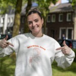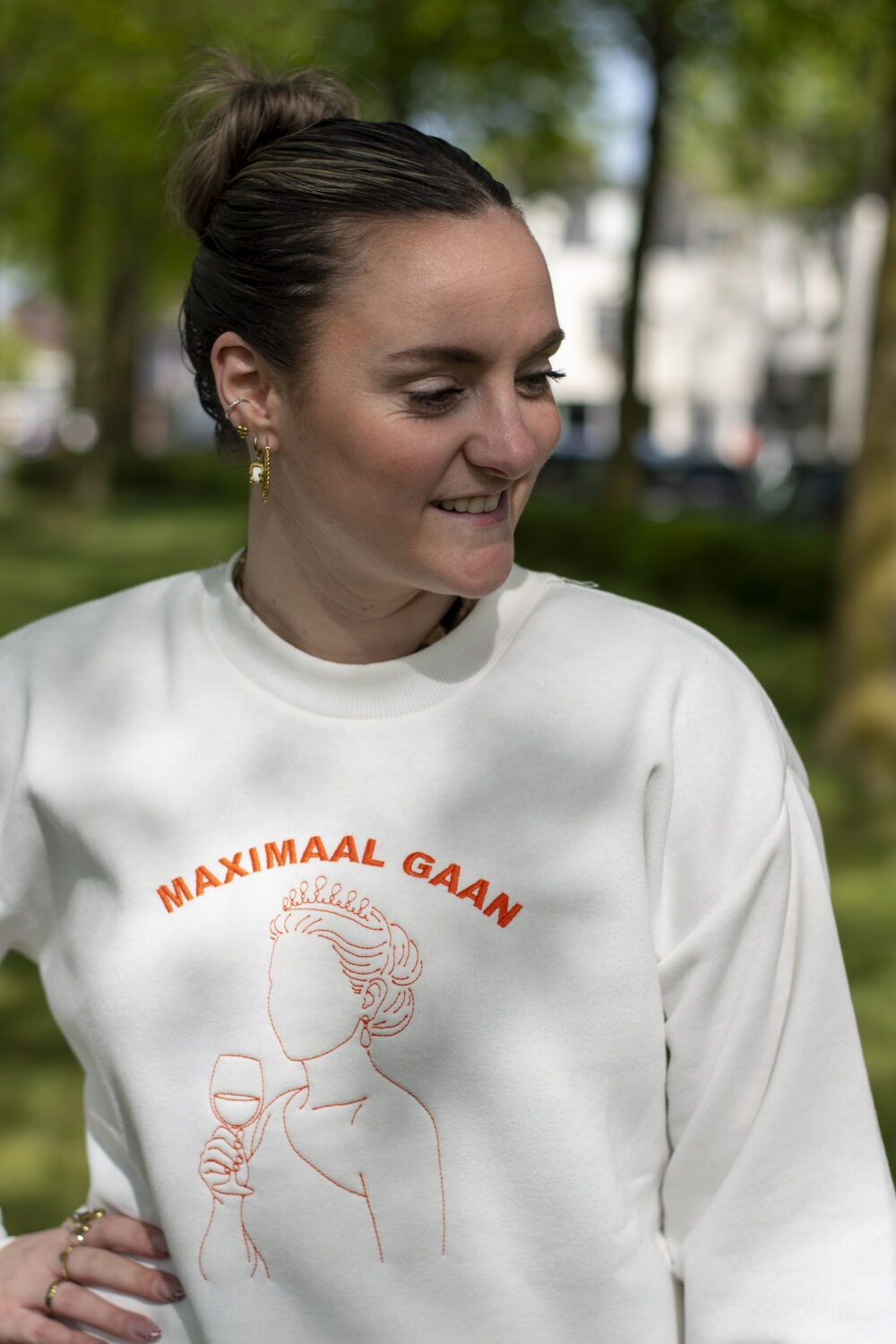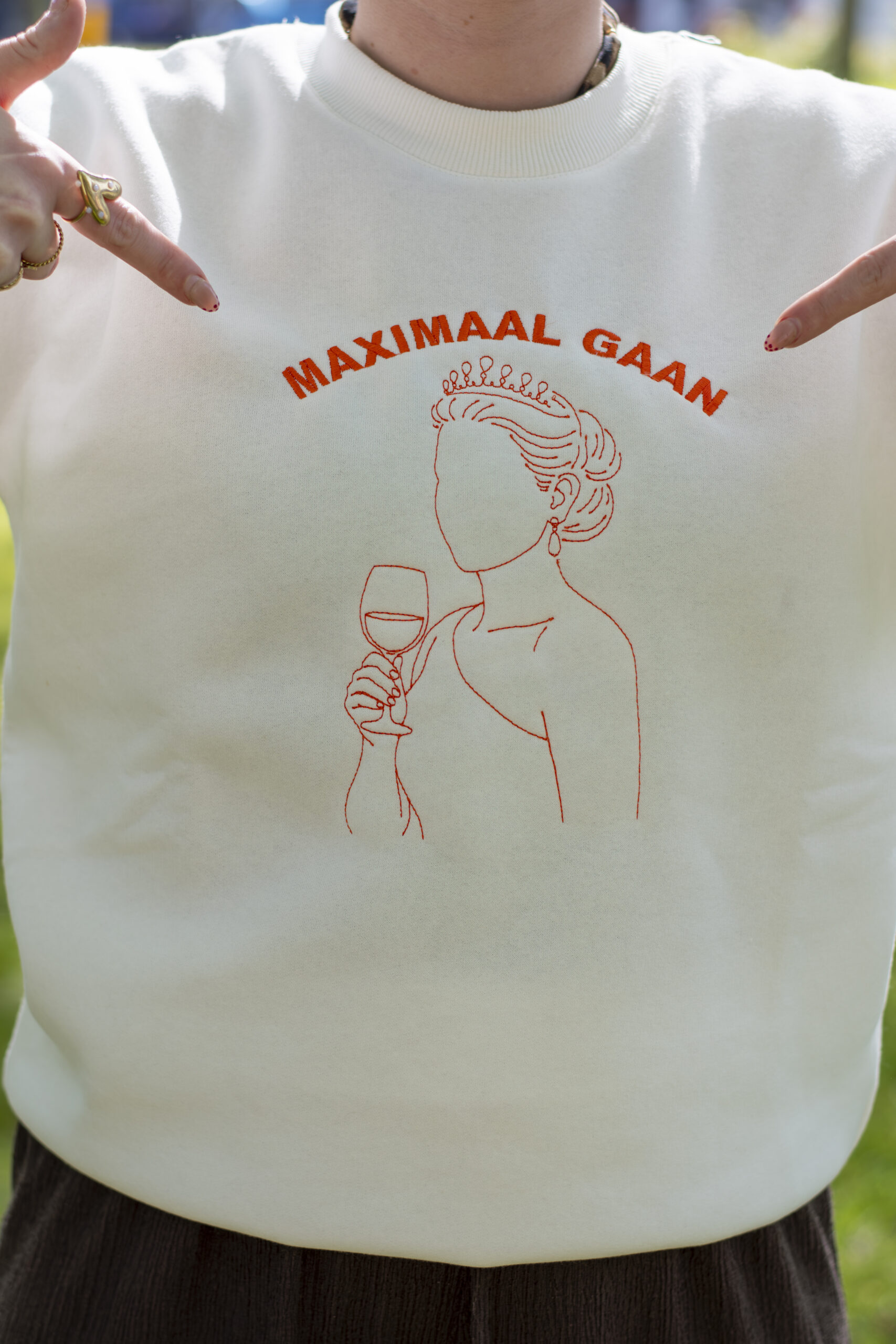 • Je kunt deze leuke koningsdag afbeelding laten borduren op je eigen sweater of t-shirt