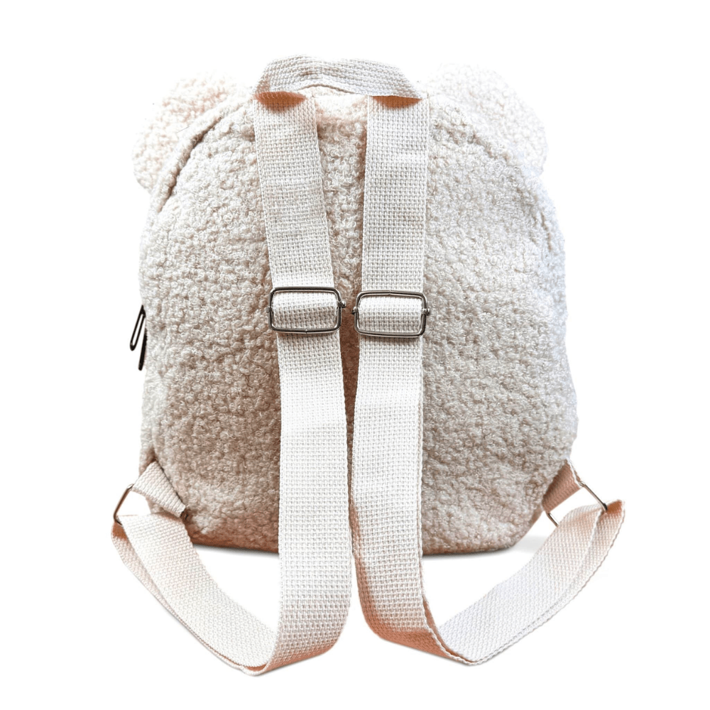 Gemaakt van heerlijk knuffelbaar teddy-materiaal, is dit rugzakje perfect voor kleine ontdekkingsreizigers die comfort en stijl willen combineren.