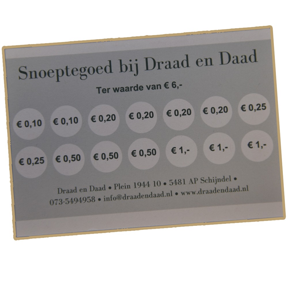 • Snoeptegoed ter waarde van €6,00 bij Draad en Daad
